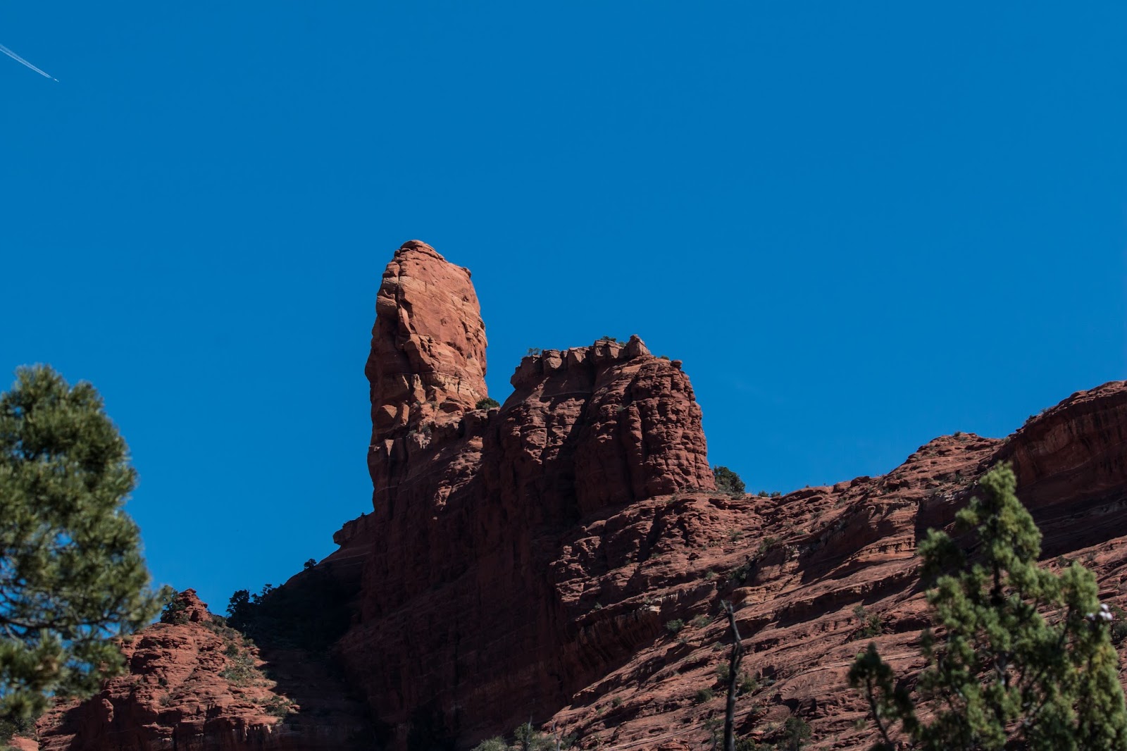 Today though I picked it up again for a jaunt up the "Jim Thompson" trail which heads up Oak Creek Canyon well above a road we have driven a bunch of times. It was a splendid hike, new, to us, rocks, views, and for a Sunday especially relatively few people.